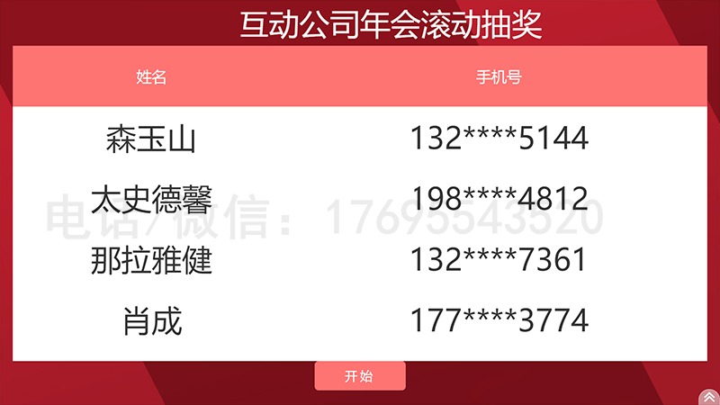 可以同时导入多个表单数据(姓名、号码、手机号码等)进行滚动抽奖的产品,后台可以自由灵活设置,可以广泛用于各种场景下的活动。